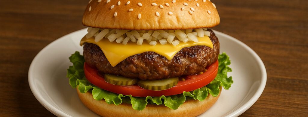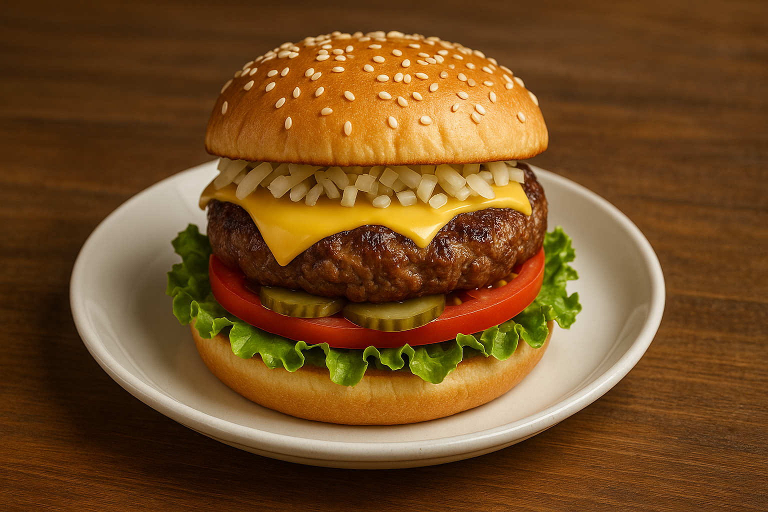 。ハンバーガー 当店自家製のバンズとハンバーグを使った食べ応えバツグンのハンバーガーです。